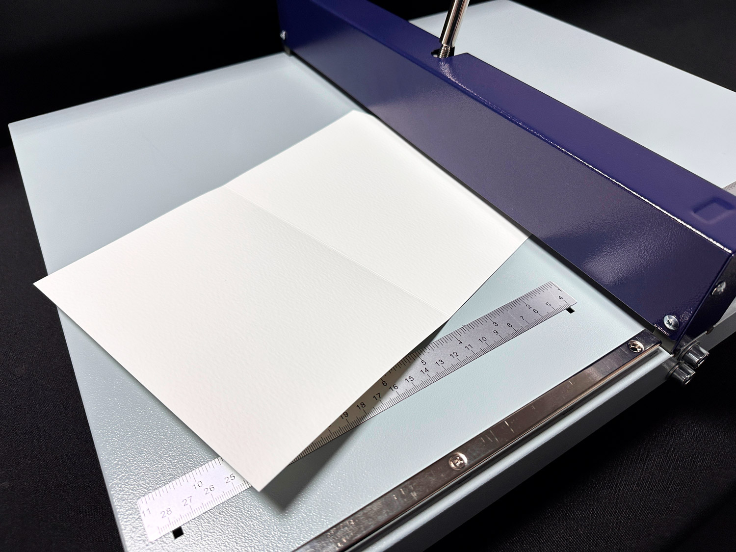 It has a maximum crease length of 460mm, making it possible to crease sheets up to A2 size. The spring-loaded pressure bar means that minimal physical effort to create the crease is needed even when working with the thickest card.