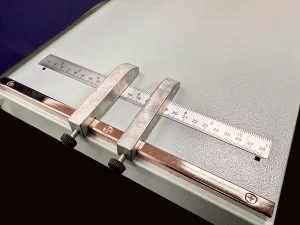 The unique screw-in lockable guides can be easily positioned, enabling quick and definitive positioning with the utmost accuracy. Constructed from the highest quality powder-coated steel, a clean crease is guaranteed even when using thick or hard papers/card up to 450gsm (approximately 1.5mm thick). As the crease pressure is quite high, the minimum recommended paper weight is 120gsm and this unit is not considered suitable for lesser weight plain copy papers.